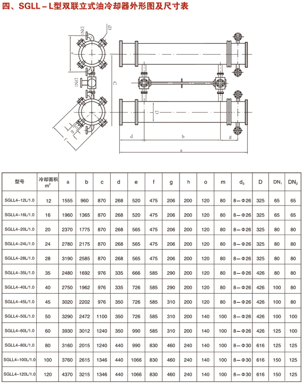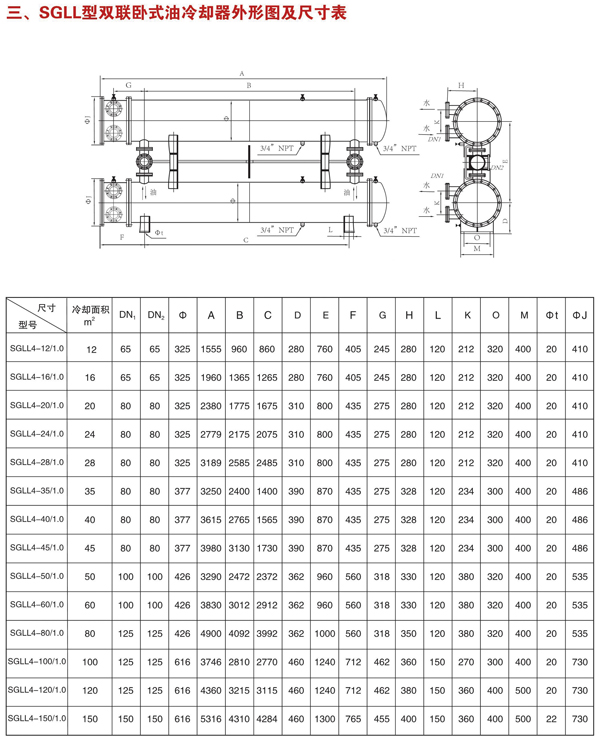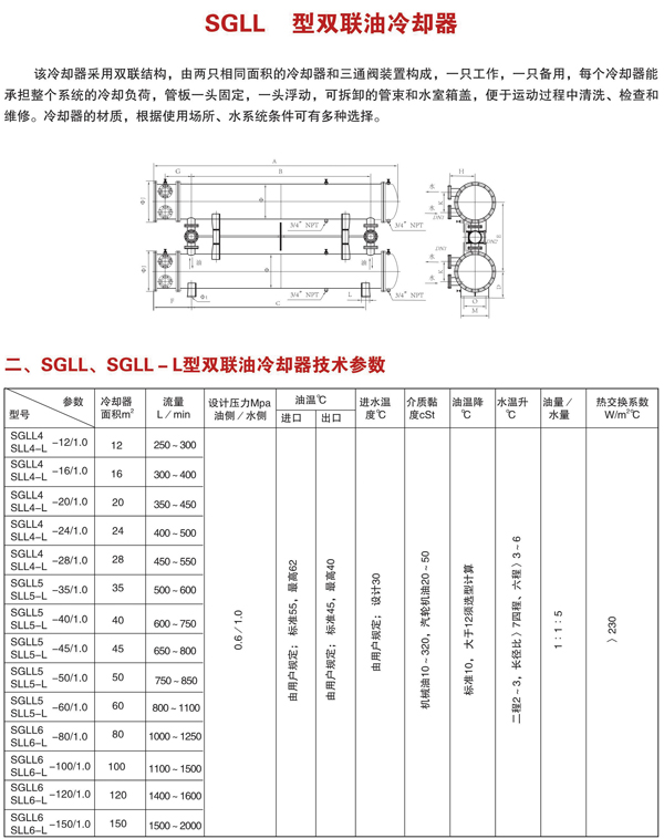 該冷卻器采用雙聯結構,由兩只相同面積的冷油器和三通閥裝置構成,一只工作,一只備用,每個冷卻器能承擔整個系統的冷卻負荷,管板一頭固定,一頭浮動、可拆卸的管束和水室箱蓋,便于運行過程中清洗、檢查和維修。冷卻器的材質,根據使用場所、水系統條件可有多種選擇。